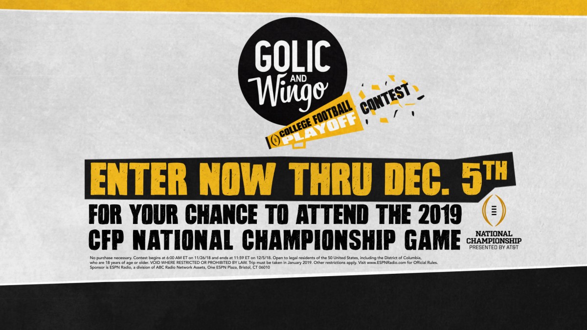 From Nov 26 – Dec 5, every college football fan will have the chance to prove why THEY are the key to their team winning the CFP National Championship. Every moment matters and SO DOES EVERY FAN. By showing Golic and Wingo why they are the ultimate super fan, ESPN Radio listeners can win their way to the biggest matchup of them all.