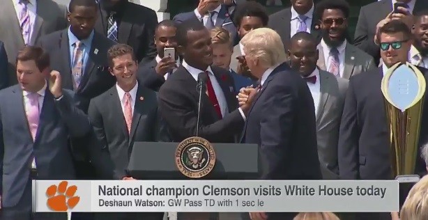 The Clemson football team visited the White House on Monday to celebrate their national championship and meet the President. President Trump had high praise for Deshaun Watson.